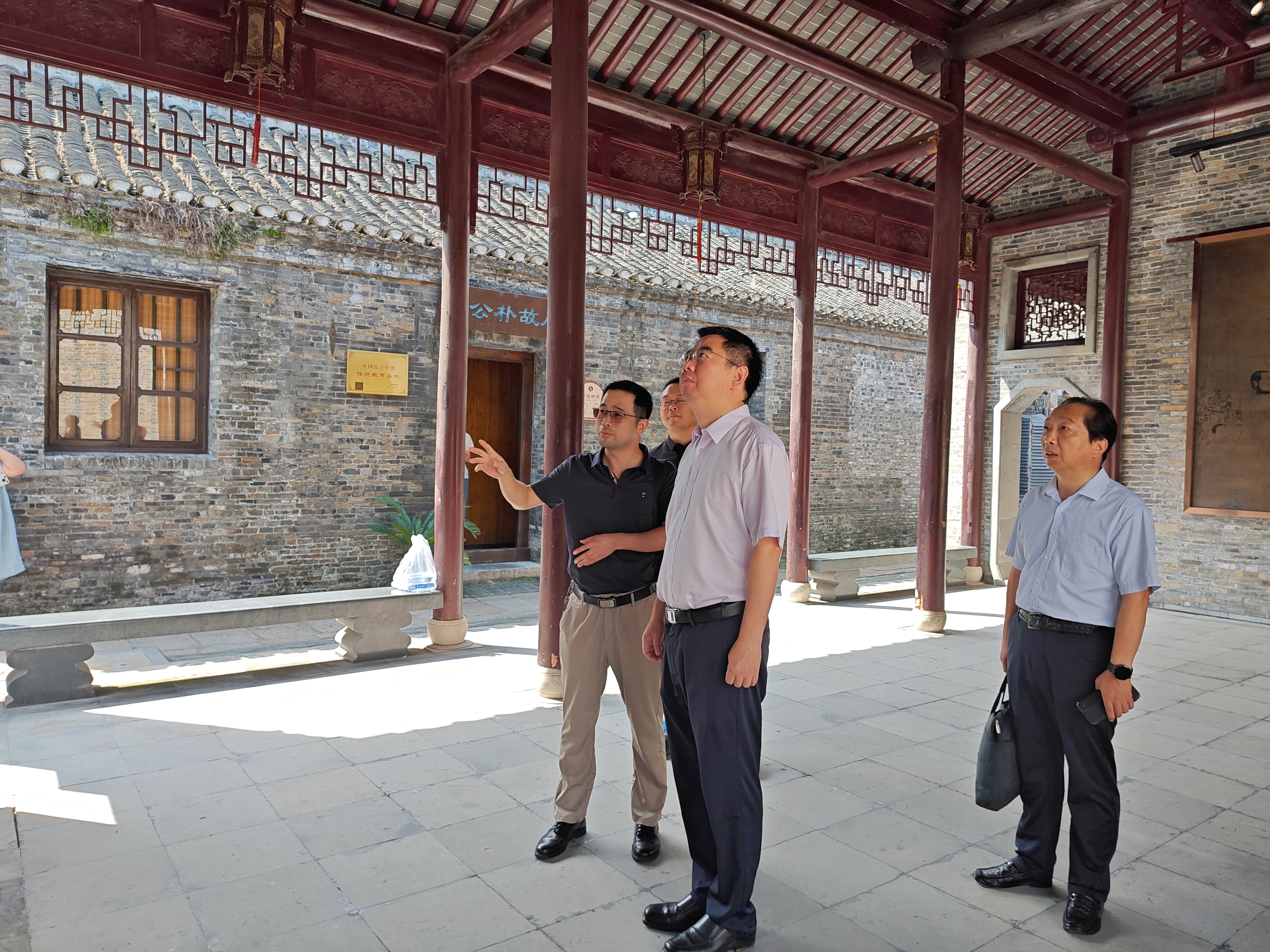 8月8日上午,镇江市副市长、民盟镇江市委会主委武鸣前往西津渡历史文化街区,实地走访调研民盟中央传统教育基地——李公朴故居。民盟镇江市委会专职副主委胥云飞、市文广旅局三级调研员周连锁、西津渡文化旅游有限公司董事长王力陪同调研。